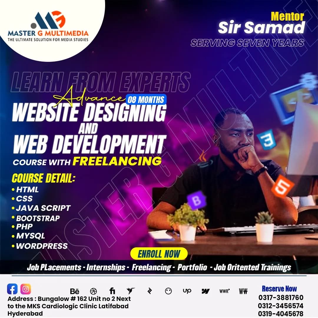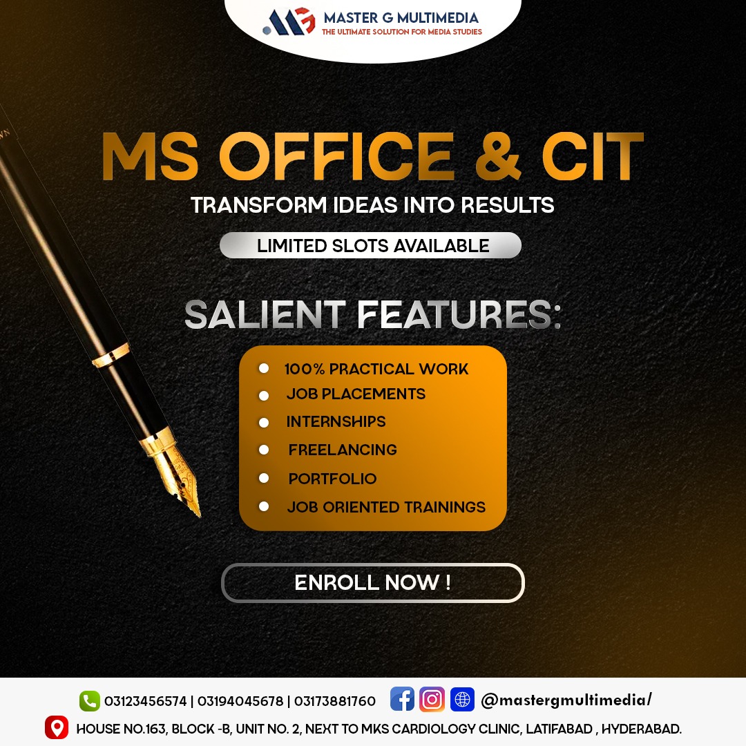 Master G Multimedia Advance Computer Course Academy, established in 2017 in Hyderabad, Pakistan, is a leading institute committed to delivering high-quality, advanced computer education. We specialize in skill-based training in graphic design, video editing, animation, web development, and other in-demand IT fields.